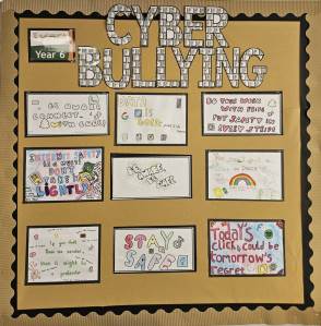 Our Year 6 children are encouraged to be responsible online citizens by discussing with them how social media can affect a person's health. They regularly reflect on how to responsibly use social media and the internet in a way that protects the health, wellbeing and rights of all. Here are examples of their slogans designed to persuade others to use the internet in a way which looks after the wellbeing of everyone.