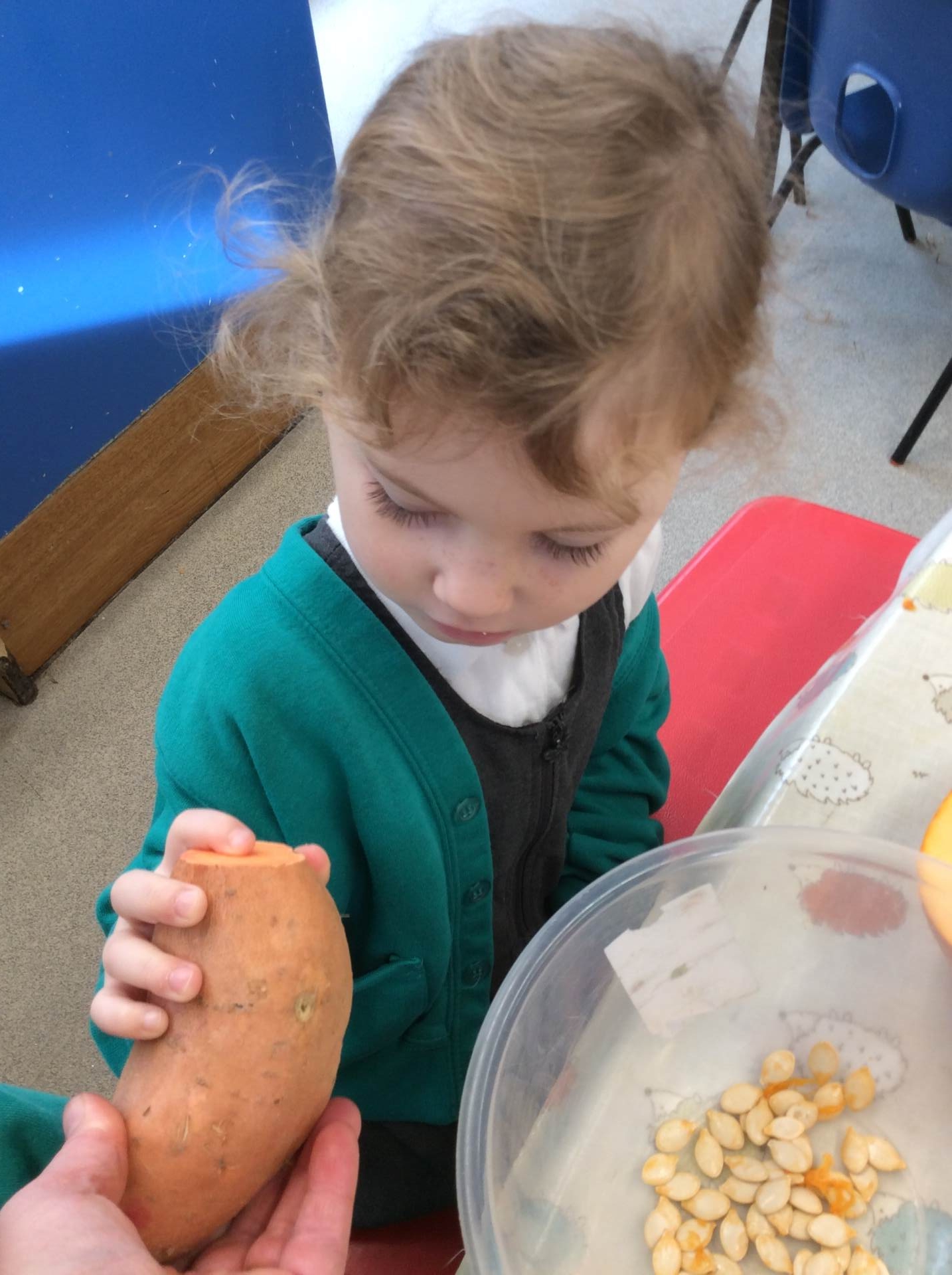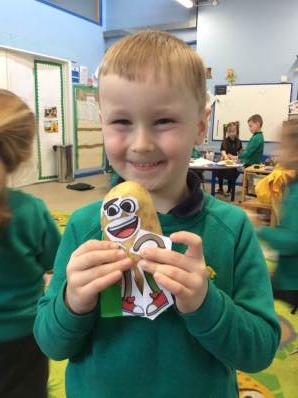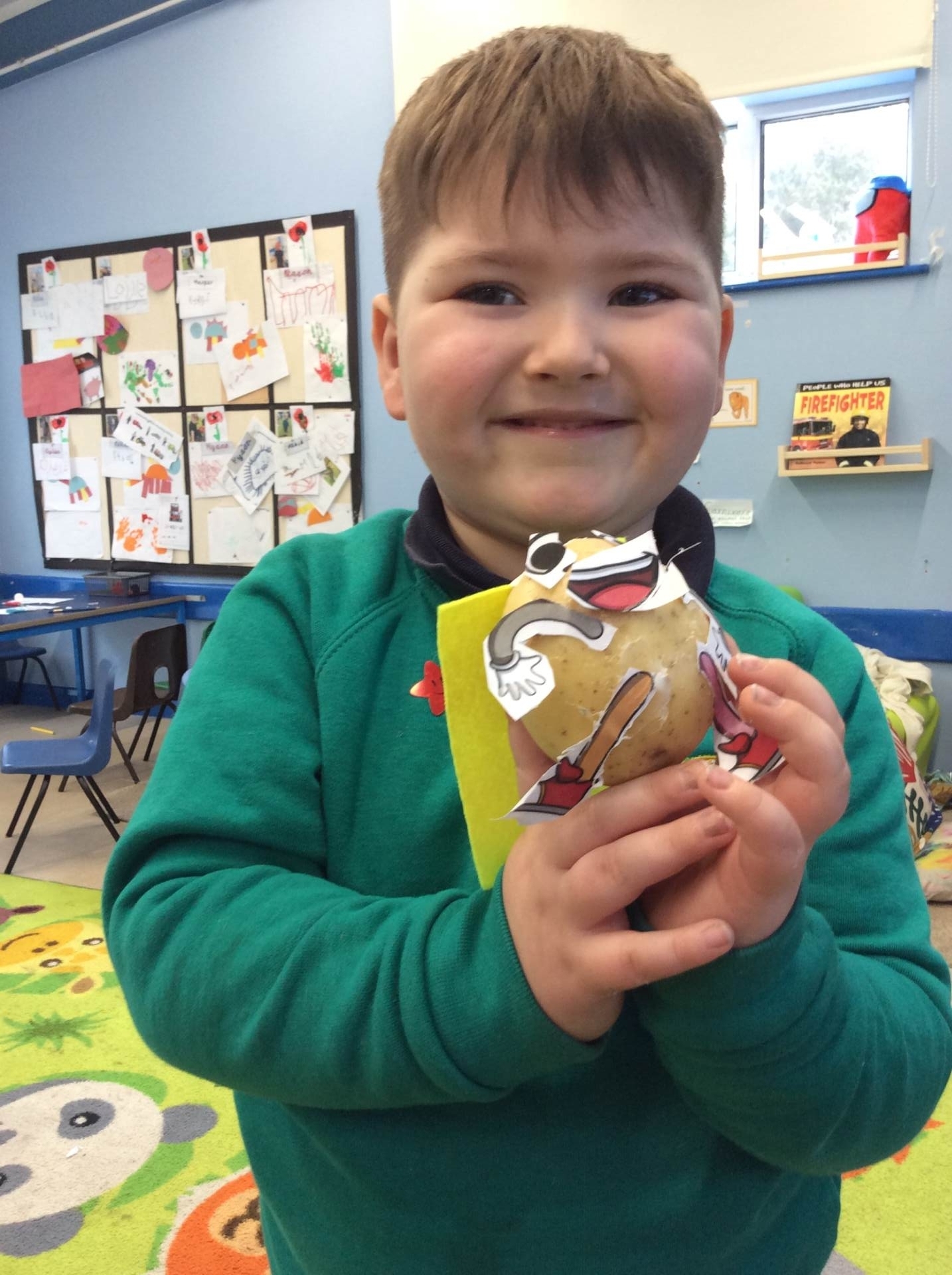 ‘I used tape to put my cape on my potato. It was sticky but I had to push really hard…it kept falling off. I got more tape and it stayed on’ Reception child.