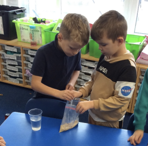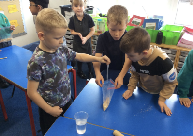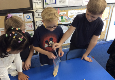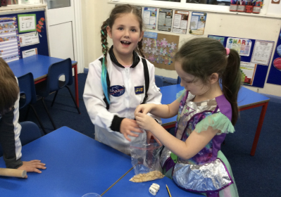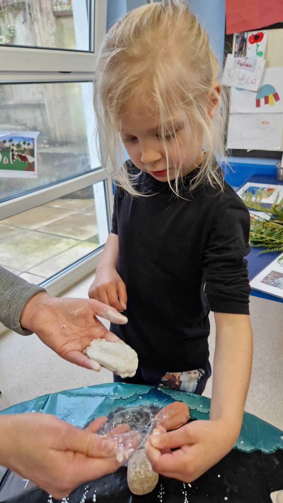 Reception were excited to have a visit from a member of staff from Torquay Museum. The children had been learning all about fossils and dinosaurs and impressed our visitor when they were able to use the word palaeontologist correctly. The children were able to use their senses to develop and extend their historical knowledge further by searching for fossils in the sand, creating their own fossils out of clay and investigating how the earth changes over time using jelly and crackers as lava and tectonic plates.