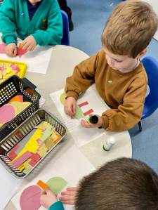 The children have a fantastic time learning about shapes, the children use them to create pictures, build castles and homes or the tallest tower. Through these learning opportunities, the children learn about the properties of shapes and how to identify them, including in the environment and how to use them in patterns and pictures.