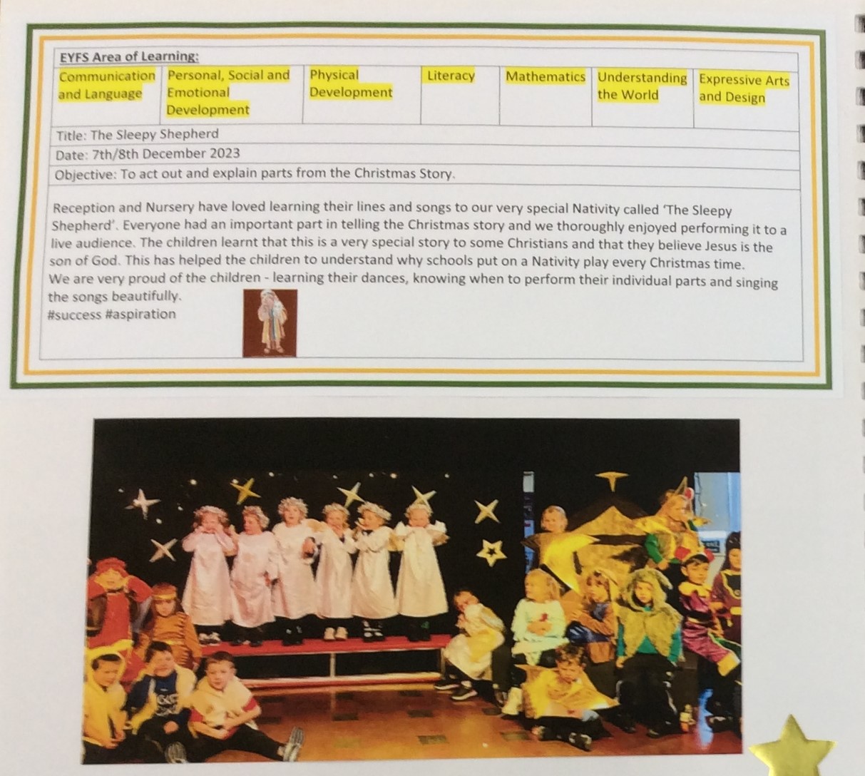 EYFS children develop their religious knowledge through their understanding of the world. Much of their knowledge is acquired spontaneously through their own interests as well as through carefully planned activities where the children are filled with joy and excitement as they explore and learn. The children are able to develop knowledge in a “hands on” approach as festivals and celebrations occur across the year over different religions. The children especially love being able to participate in a fantastic Nativity and finding out about why Christians celebrate Easter.