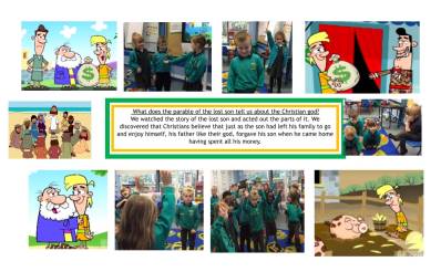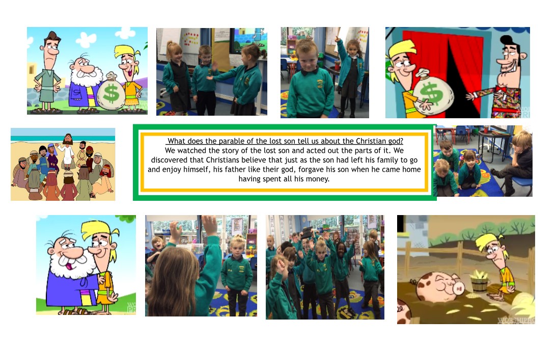 Year 1 pupils have many opportunities to build on their knowledge from EYFS, thinking carefully about what it means to belong to a faith community and how we feel when we belong to a group of people. The children are able to begin finding out about what it means to be Jewish, their beliefs and some of the ways that they live. The children are encouraged to ask questions and think about how their lives may differ or be the same from someone who is Jewish. There are many lovely parables in the Bible and year 1 have a great time sharing and discussing some of these parables. Through drama, conversations and art the children are able to learn together what a parable is and the meanings within them.