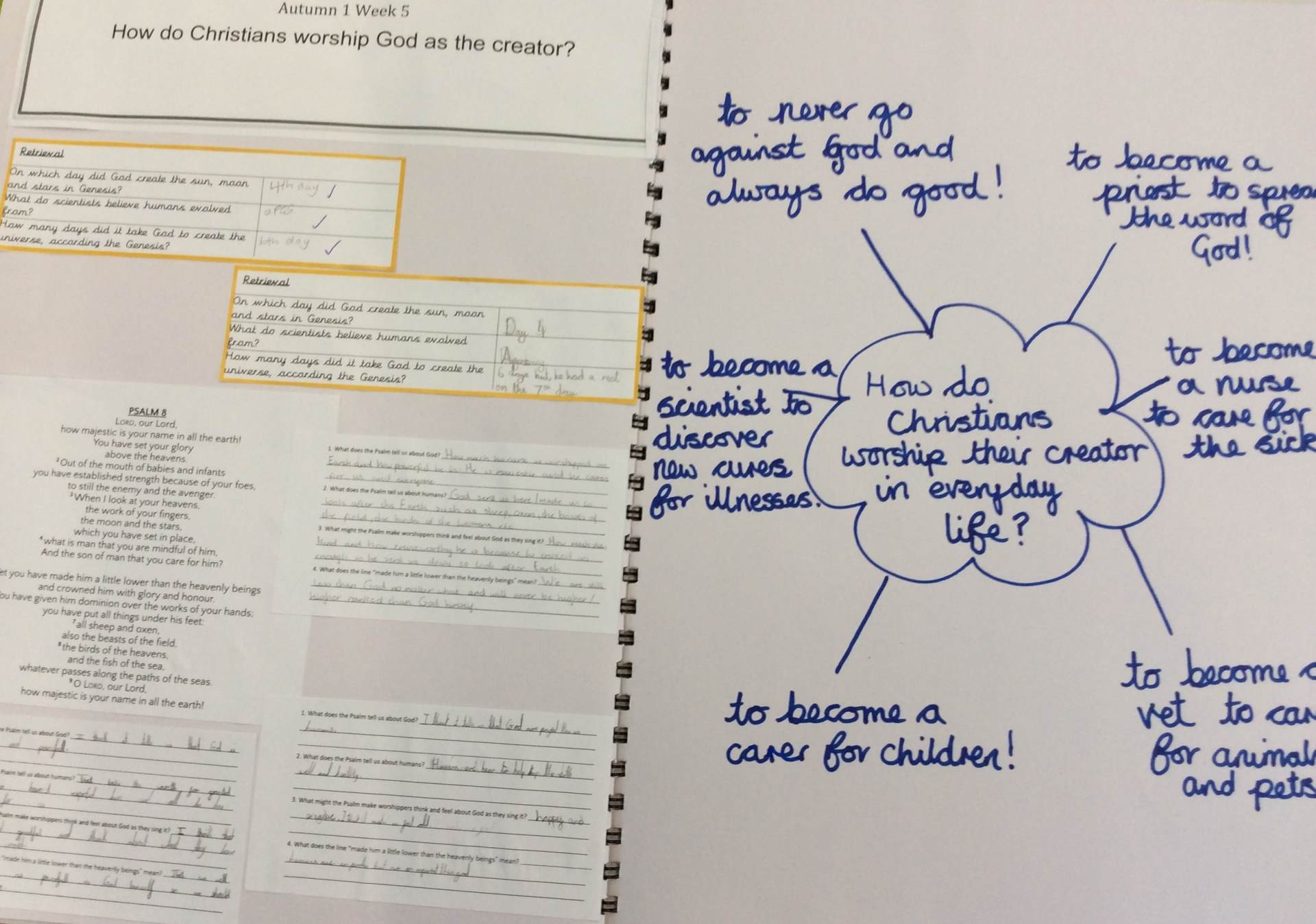 Children in year 3 build upon their knowledge gathered in KS1. They are able to find out about the importance of festivals and celebrations for Muslims and Jewish families. They will be able to make simple comparisons between them and consider how they compare with their own celebrations. The children will look in detail at the Creation story and answer the question; What do Christians learn from the Creation story and what is it like for someone to follow God? After reading and discussing biblical stories, Children will look at the community and world that they live in and consider how it compares to a world that Jesus wanted. Afterwards, the children will come up with fantastic ideas about how they think they and others could make the world a better place.