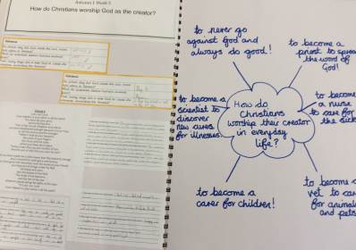 Throughout the year, the children have many opportunities to develop their knowledge and understanding of a range of religions. Through their learning experiences, the children are encouraged to consider their own opinions, ask questions and think critically about their own values and beliefs as well as how beliefs and values influence a person’s actions. They try to answer big questions such as; How do Christians decide to live and what would Jesus do? Why do Christians believe Jesus was the Messiah and what does it mean to be a Muslim in Britain today? These learning opportunities mean the children are able to research, debate, discuss and think deeply about how people choose to live in their local and wider community.